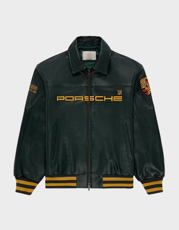 Take a classic step into perfection, with the Aim Leon Dore x Porsche Green Leather Jacket, a jacket that is the perfectly built blend of new and old. Being made of the best real leather, the jacket provides a rich texture and a strong frame, which improves with age. The dark color is green, a tribute to old fashioned racing design. Created in a clean and confident silhouette the jacket has got a smart front zip closing which gives it style and functionality. The shirt-like collar makes it have a structured, obsolescent style, and the full sleeves along with the ribbed cuffs make it comfortable and fit perfectly. It is daily use yet elegant, with side pockets on both sides, so you have some place to store the basics without breaking the sleek appearance. Well, this is not mere outer-wear, it is a statement of both heritage, performance and lifestyle.