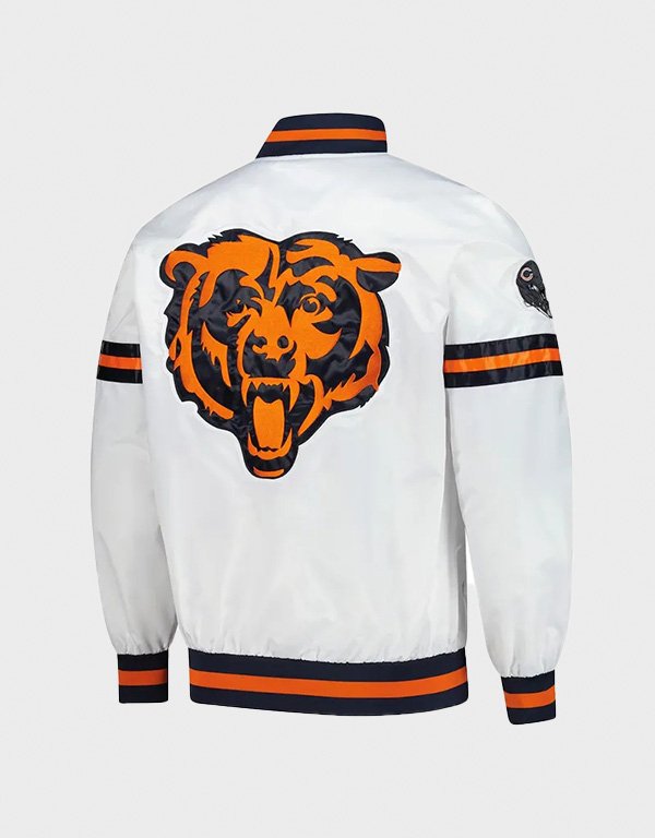 Be a team player by displaying some Chicago Bears team pride in classic style the Chicago Bears Scout Satin Jacket. Made of high quality satin, this jacket stands out in terms of its sleek and smooth effect that enhances a blend of traditional and contemporary style. It is pure white in colour, hence sticking out like a piece. Available in comfort and durability, the Scout Satin Jacket has a breathable warm interior with a soft viscose lining that prevents the jacket from being bulky. It has a varsity style collar and a full snap button down front, taking it back to that vintage, old school athletic look, with long sleeves and rib knitted cuffs to trap the heat. It is made to feel sophisticated with two parallel waist pockets and two inner pockets that help you have what you need to stay close and practical.