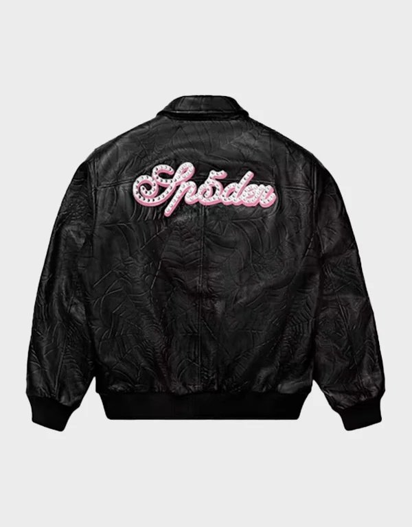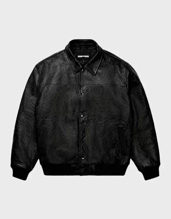 Sp5der Debossed Web Black Leather Jacket