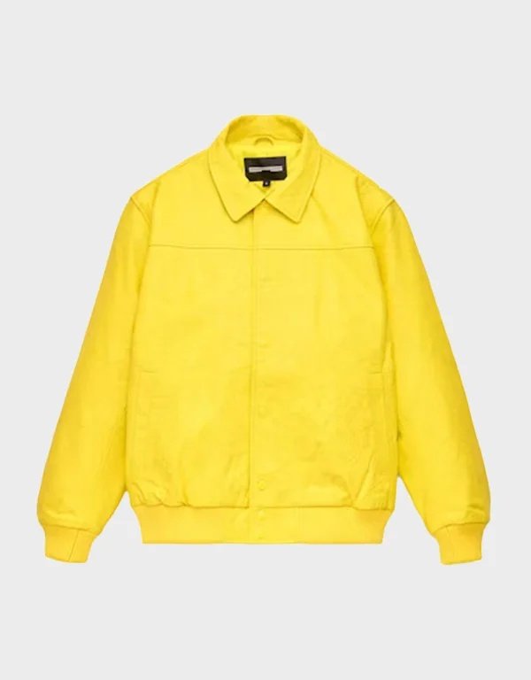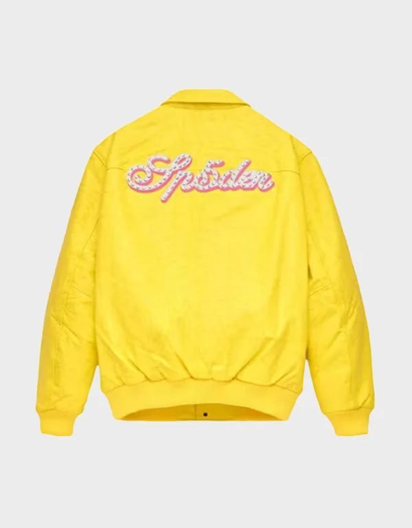 Sp5der Debossed Web Yellow Leather Jacket