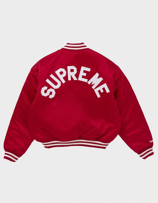 Supreme Mitchell & Ness Satin Red Varsity Jacket