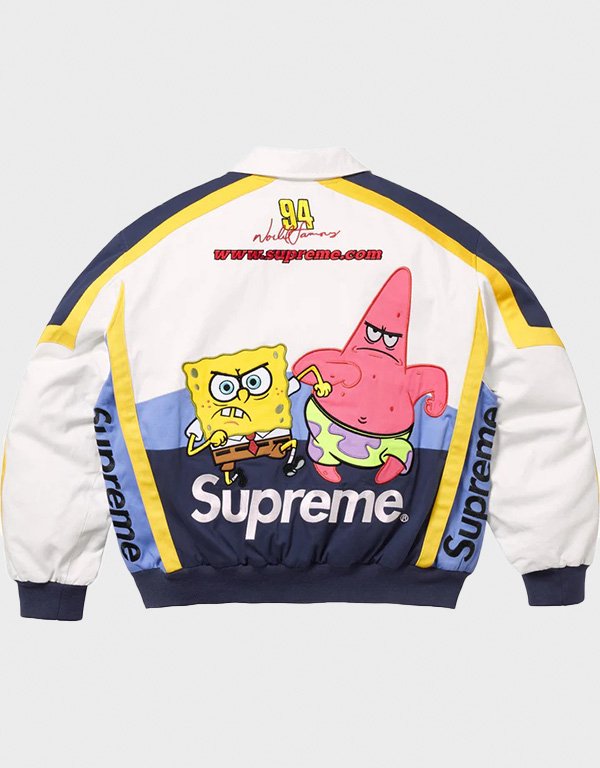 Supreme X SpongeBob SquarePants Jeff Hamilton White Racing Jacket