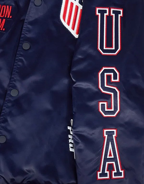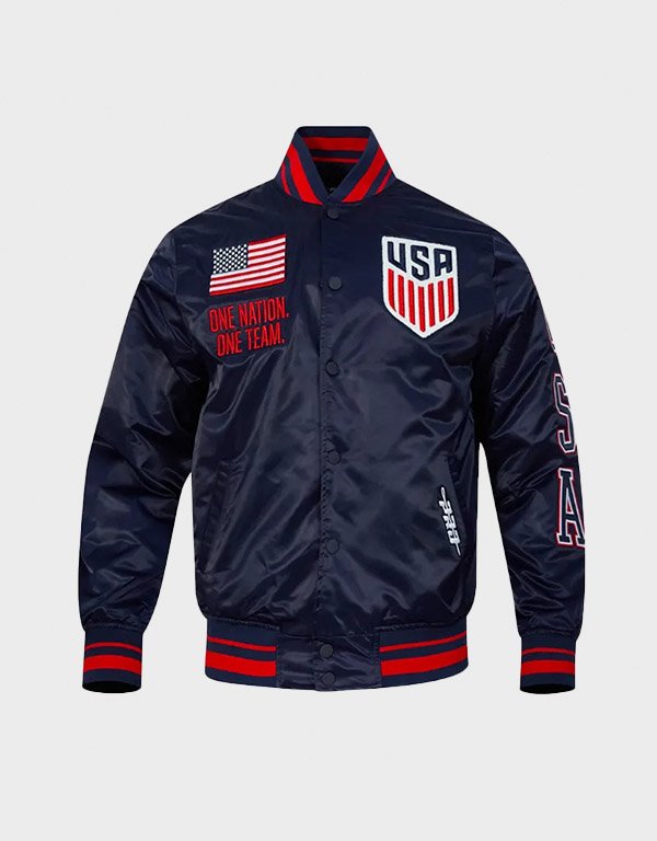 US Soccer Navy Satin Varsity Jacket
